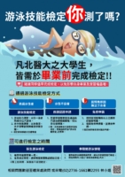 您現在的位置: 首頁 / 專業教練 / 游泳技能檢定通過須知 / 109游泳技能檢定宣傳海報